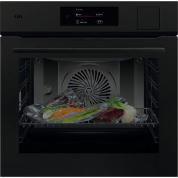 Rúra vstávaná s parnou funkciou; AEG 9000 SteamPro NB9S831AT; Šírka (cm): 60x60; En. trieda: A++; Technológia: SteamPro / ProAssist / WiFi / Steamify; Samočistenie: Parné;andnbsp;Vnútorný objem (l): 70; Ovládanie: Dotykové intuitívne ovládanie, farebný TFT displej, Supex 8; Teleskopické výsuvy: Áno; Teplotná sonda: Áno; SoftClosing: Soft Closing a Soft Opening; Farba: Matt Black; Počet skiel: 4; Rozmer VxŠxH (mm): 594x595x567; Rozsah teplôt (°C): 30-230
