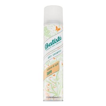 Batiste Natural & Light Bare, 200 ml, Suché šampóny pre ženy, Na umytie a následné sušenie vlasov vám už nezostáva čas, ale nechcete sa vzdať perfektného vzhľadu? Suchý šampón Batiste Natural & Light Bare zaistí ľahké a rýchle riešenie. Pohltí prebytočný kožný maz, odstráni tak nežiaducu mastnotu a vaše vlasy budú hneď vyzerať rovnako dobre, akoby ste si ich práve umyli. Doslova za minútu tak získate pocit čistoty a sviežosti a účes plný štruktúry a objemu. Užite si kedykoľvek pocit čerstvo umytých vlasov aj bez použitia vody. Vlastnosti: pohlcuje prebytočnú mastnotu dodáva vlasom energiu a lesk vytvára bohatý a vzdušný objem osviežuje a prevzdušňuje Použitie: Nádobu pred použitím dôkladne pretrepte. Nastriekajte najmä ku korienkom vlasov zo vzdialenosti 20 – 30 cm od hlavy. Prstami jemne vmasírujte do jednotlivých prameňov a potom dôkladne vyčešte.