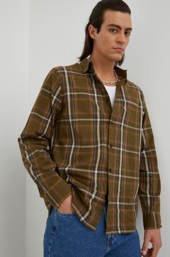 Bavlnená košeľa Levi's pánska, zelená farba, regular, s klasickým golierom