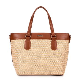 Dámska kabelka z ekokože a výpletu béžovo-hnedá 100-4Y-409-95