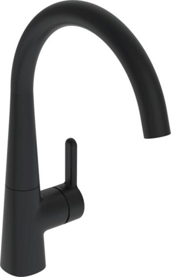 Páková stojanková drezová batéria s otočným ramienkom vo farbe čierna matná. S matným povrchom.