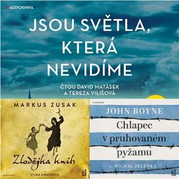Audiokniha MP3 - autor Markus Zusak, Anthony Doerr a John Boyne, čte Různí interpreti a Více interpretů Jsou světla, která nevidímeMarie-Laure prožívá s milujícím otcem spokojené dětství v Paříži. Život ji však postaví před první těžkou zkoušku, když v raném věku oslepne. Tehdy ještě netuší, že má před sebou další, mnohem obtížnější zkoušky. Němci obsazují Paříž a Marie s otcem jsou nuceni uprchnout, musejí opustit své dosavadní jistoty a vydat se za nejasnou vidinou bezpečného útočiště. Je ale možné najít takové místo v rozbouřené Evropě? Zvláště když s sebou Mariin otec nese nebezpečné tajemství? V německé hornické kolonii vyrůstá sirotek Werner, toužící po jiném osudu, než jaký mu byl předurčen. Chce přijít na kloub všem záhadám, které jej obklopují, fascinuje jej věda, technika. Jeho přirozený talent a samozřejmost, s níž je schopen opravit každé rádio, nezůstanou nepovšimnuty. Zajistí mu místo na elitní vojenské akademii pro Hitlerjugend – stane se z něj...