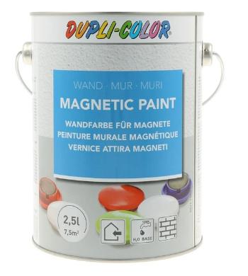 Vodou riediteľná interiérová farba, ktorá ponúka široké možnosti použitia - v školách, domácnosti, kancelárií, detských izieb a pod.Farba obsahuje železité pigmenty, ktoré zabezpečujú následne prichytenie magnetov.Je možné ju aplikovať na steny (na latexové farby), drevo, tapety a iné.Zároveň je premaľovateľná - ak bola magnetická farba nanesená v dostatočne silnej vrstve, je možné ju premaľovať interiérový farbami alebo sprejmi na vodnej báze. Magnetická farba nie je vhodná do exteriéru a ani tam, kde dochádza k zvýšenej vlhkosti. Výdatnosť: - 2-3 m2/L (pri dvoch vrstvách)- 4-6 m1/L (pri jednej vrstve) Príprava podkladu Povrch musí byť hladký a suchý.Okolitú plochu dôkladne zakryte, aby ste zabránili znehodnoteniu.Ak sa na stenách nachádzajú tapety, je potrebné ich odstrániť.Veľmi savý povrch pred aplikáciou magnetickej farby ošetrite disperzným náterom.Pre zlepšenie priľnavosti odporúčame hladké a lakované povrchy prebrúsiť. Aplikácia Pred použitím obsah plechovky dobre premiešajte, aby prišlo k rovnomernému rozloženiu pigmentov vo farbe.Magnetickú farbu nemiešajte so žiadnym iným náterom.Farbu aplikujte valčekom v prvej vrstve a nechajte 3-4 hodiny preschnúť.Následne aplikujte druhú vrstvu. Pri nanesení 2-3 vrstiev je magnetický účinok postačujúci pre bežné druhy magnetov.Na zvýšenie magnetického účinku môže byť aplikovaných viac vrstiev farby alebo pre dostatočnú prídržnosť magnetov použite super magnety. Čistenie náradia Pracovné náradie po skončení prác očistite vodou.