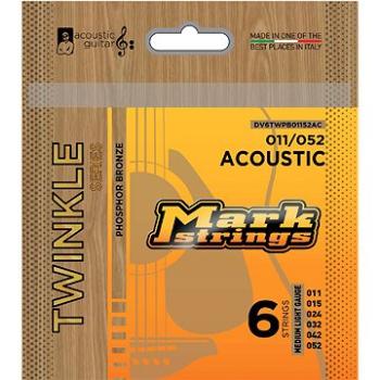 Struny – pre akustické gitary, 6 strún v balení, tvrdosť 011 až 052, light, materiál fosforbronz, bežná farba Zásadné vlastnosti strún DV MARK Twinkle PB 6 011-052 Zaobstarajte si nové struny na svoj nástroj Sú perfektné na akustické gitary Materiálom strún je fosforbronz Najtenšia struna bola zhotovená s tvrdosťou 011, tá najhrubšia potom 052 Ich tvrdosť sa označuje light Vnútri balenia objavíte jednu súpravu strún DV MARK Nájdu využitie v prípade 6-strunových nástrojov