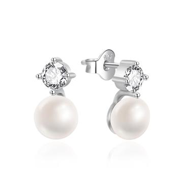 Brilio Silver Pôvabné strieborné náušnice so zirkónmi a perlou EA1046W