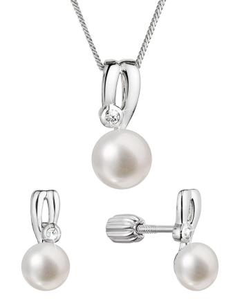 Evolution Group Perlová súprava šperkov so zirkónmi a riečnou perlou 29071.1B (náušnice, retiazka, prívesok)