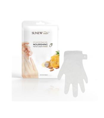 SunewMed+ Maska na ruce se sladkým mandlovým olejem a mateří kašičkou dokonale hydratuje, promašťuje a regeneruje pokožku rukou a zanechává je jemné a hladké.