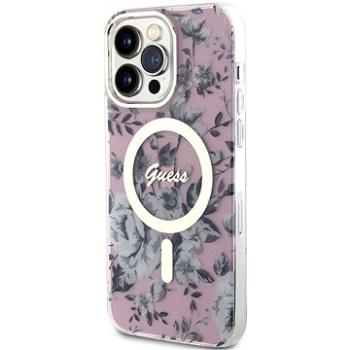 Guess PC/TPU Flowers IML MagSafe Kompatibilný Zadný Kryt na iPhone 14 Pro Pink (GUHMP14LHCFWSP)