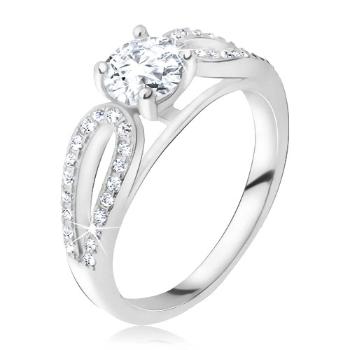 Snubný prsteň - okrúhly zirkón uchytený medzi koncami prsteňa - Veľkosť: 56 mm