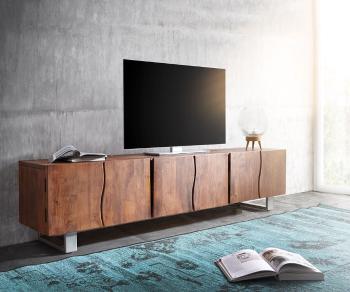 TV stolík Live Edge 200 cm akácia prírodná 4 dvierka 2 zásuvky