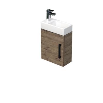 Závesná kúpeľňová skrinka s keramickým umývadlom v prevedení dub wellington s matným povrchom o rozmere 40x47,5x20 cm. Povrch v prevedení lamino.