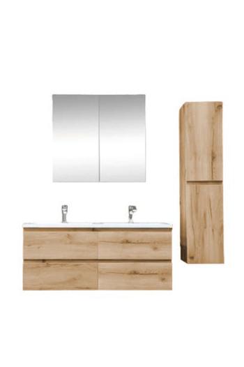 Závesná kúpeľňová skrinka v dekore dub s matným povrchom o rozmere 119x50x45 cm. Povrch v prevedení lamino.