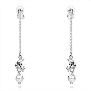 Náušnice zo striebra 925, delfín a gulička na tenkých retiazkach