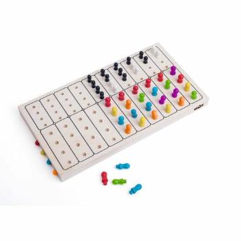 Stolová hra – detská a logická hra, pre 2 hráčov,, vhodné od 3 rokov Hra Logik je vhodná pre deti už od 3 rokov, ale užijú si s ňou veľa zábavy aj staršie deti. Je určená pre 2 hráčov, z ktorých jeden má za úlohu umiestniť ľubovoľnú kombináciu kolíkov na hraciu dosku. Druhý hráč sa snaží túto kombináciu uhádnuť, a to takým spôsobom, že skladá 5 kolíkov v jednotlivých hracích radoch. Uhádnutie správnej farby sa označí kolíkom bielej farby, neuhádnutie čiernym kolíkom. Hra Logik okrem skvelej zábavy ponúka aj tréning kombinačných schopností a rozvíja logické aj matematické uvažovanie. Kľúčové vlastnosti hry LogikLogická hra vhodná pre deti od 3 rokovUrčená pre 2 hráčovCieľom hry je uhádnuť farebnú kombináciu kolíkovHra Logik precvičuje kombinačné schopnostiRozvíja logické aj matematické uvažovanie Rozmery: 35 × 15 × 2,5 cm Počet hráčov: 2