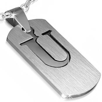 Prívesok z chirurgickej ocele, dvojdielna tabuľka, veľké tlačené písmeno U.