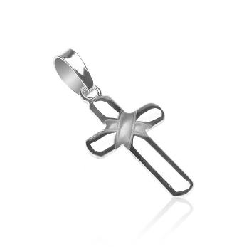 Prívesok zo striebra v tvare kríža s hladkým matným pásom okolo stredu.