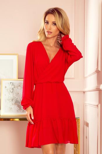 Vzdušné letné šaty 329-2 Numoco - Zavinovací výstrih do V - vybavené pohodlnou gumou - sukňa v dĺžke po kolená zdobená vkusným volánom - dlhé rukávy
