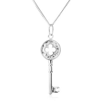 Náhrdelník - trblietavá retiazka, kľúčik s výrezom kvetu, striebro 925