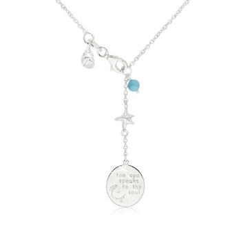 Strieborný 925 náhrdelník, známka s nápisom "The sea speaks to the soul", gulička, hviezdica a morská mušľa.