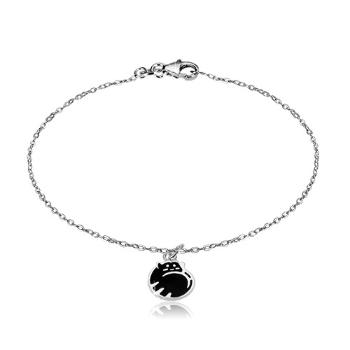 Náramok zhotovený zo striebra 925 z malých oválnych očiek, prívesok s motívom mačky, zdobený čiernou glazúrou.