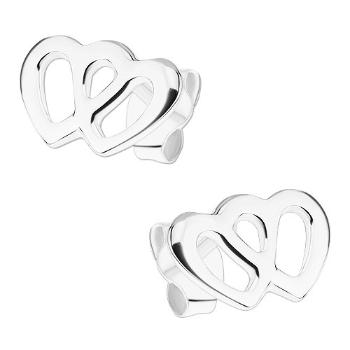 Náušnice zo striebra 925, dva prepojené obrysy sŕdc, puzetky
