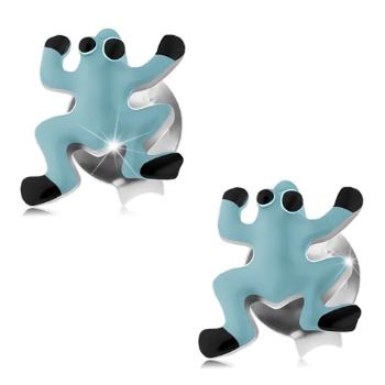 Strieborné náušnice 925, svetlomodrý glazúrovaný odtlačok chodidla, čierne prstíky, puzetové zapínanie.