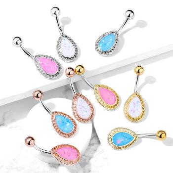 Oceľový piercing do pupka - slza s farebnými odleskami, rôzne variácie - Farba piercing: Strieborná - biela