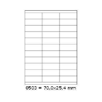 rozmer etikety: 70 x 30 mm počet etikiet na A4: 27 ks počet listov v balení: 100 Označujte a polepujte s najnižšími nákladmi. Naše samolepiace etikety na A4 sú vhodné pre všetky atramentové aj laserové tlačiarne. Nie je teda potrebné dokupovať špeciálnu tlačiareň štítkov. Vhodné na tlač rovnakého obsahu na všetky etikety na jednom A4.Samo-lepiace etikety na A4 využijete pre jednoduché a rýchle označenie všetkého, čo vo svojej práci potrebujete. Naše etikety Vám uľahčia prácu pri označovaní regálov v sklade, paliet, krabíc, výrobkov, materiálov alebo len obyčajného náradia.Samolepiace etikety nesmú chýbať v žiadnej kancelárii. Dokonale sa hodí na označovanie kancelárskeho nábytku, šanónov alebo dokumentov, vďaka tomu vždy budete vedieť, čo kam patrí. Etikety nájdu svoje využitie aj v poštovej administratíve - označovanie balíčkov či obálok. Samolepiace etikety Vám umožnia jednoduché označovanie tovaru na predajni, využijete ich aj na tlač čiarových kódov.Samozrejmosťou je aj veľký výber veľkostí samolepiacich etikiet – aktuálne máme v ponuke takmer 70 rôznych rozmerov.