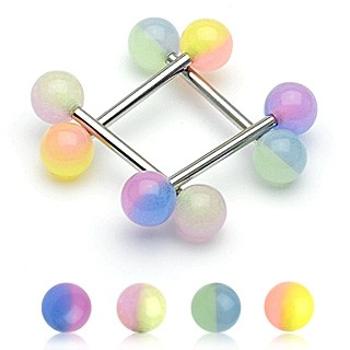 Dvojfarebný piercing do jazyka v tvare guličky vo viacerých kombináciách.