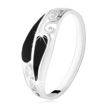 Prsteň zo striebra 925, dve úzke čierne kvapky, filigránové zdobenie - Veľkosť: 53 mm