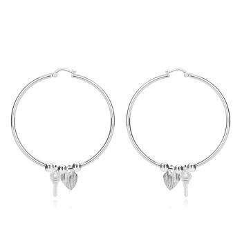 Okrúhle náušnice zo striebra 925, prívesok v tvare kľúča, srdce s ryhovaným povrchom, hladké guličky, francúzske zapínanie.
