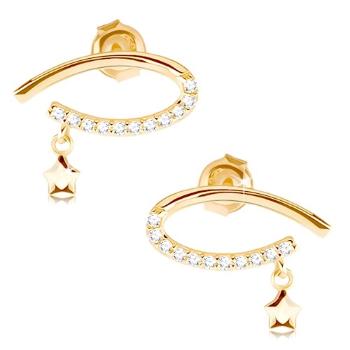 Náušnice v žltom 9K zlate, symbol "INFINITY" so zirkónmi čírej farby, puzetky.