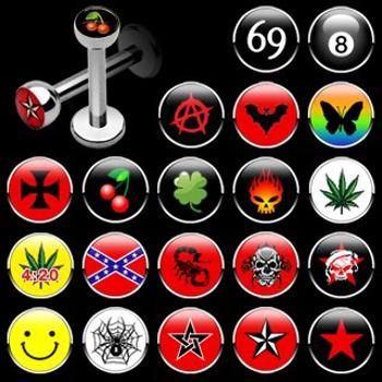 Labret - piercing do brady a pery s rôznými motívmi na guličke.