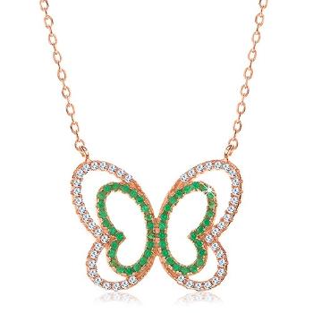 Náhrdelník zo striebra 925, medený odtieň, trblietavá zeleno-číra kontúra motýľa