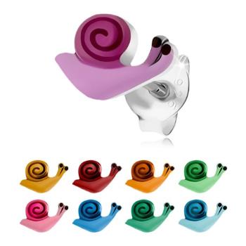 Strieborné puzetové náušnice 925, farebný slimáčik s lesklou ulitou - Farba: Fialová