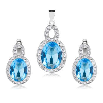 Sada zo striebra 925, prívesok a náušnice, oválny zirkón akvamarínovej farby