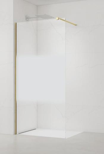 Sprchová zástena Walk-in bez vaničky a s farbou profilov v zlatom lesku, výplň je z číreho skla bez dekoru. Výrobok má povrchovú úpravu Easy Clean, ktorá uľahčuje čistenie a minimalizuje usadzovanie vodného kameňa. Posuvný systém otvárania. Označenie - ľavá a pravá orientácia.
