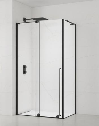 Sprchový kút s dverami v čiernej farbe, výplň je z číreho skla bez dekoru. Výrobok má povrchovú úpravu Easy Clean, ktorá uľahčuje čistenie a minimalizuje usadzovanie vodného kameňa. Posuvný systém otvárania. Orientácia - ľavá a pravá orientácia.