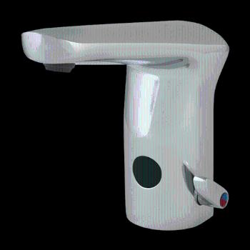 Čelné stojanková umývadlová batéria so senzorom. V chrómovom prevedení. Prietok batéria je 6 litrov / minútu. Výška batérie je 15,9 cm. Ramienko je vo výške 13,2 cm.