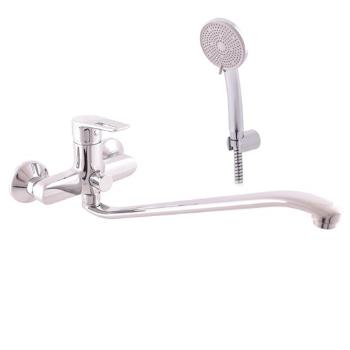 Páková nástenná vaňová batéria so sprchovacím setom. V chrómovom prevedení. Rozstup batérie 150 mm.