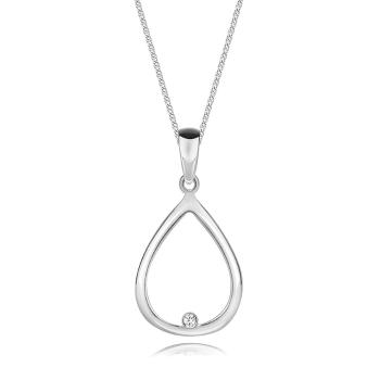 Diamantový náhrdelník, striebro 925 - retiazka z oválnych očiek, prívesok v tvare slzy, číry okrúhly briliant.