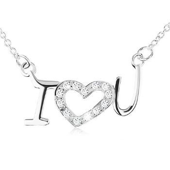 Strieborný 925 náhrdelník, retiazka z oválnych očiek, prívesok - nápis "I love you" s trblietavým srdiečkom.