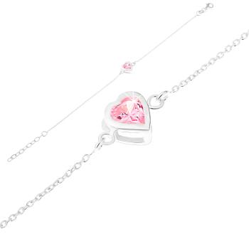 Retiazka na ruku zo striebra 925, srdiečko s ružovými zirkónmi.