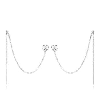 Strieborné 925 náušnice - hladké srdce s retiazkou a paličkou