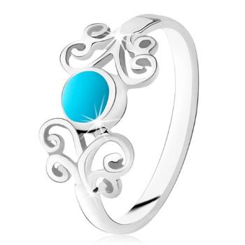 Strieborný prsteň 925, krúžok tyrkysovej farby, lesklé ornamenty, úzke ramená - Veľkosť: 56 mm