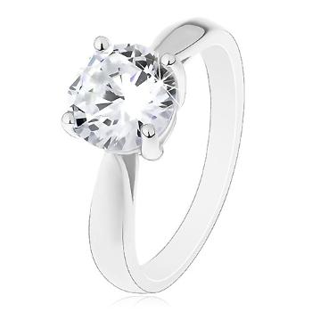 Zásnubný prsteň - striebro 925, lesklé zaoblené ramená, veľký číry zirkón - Veľkosť: 56 mm