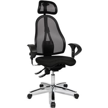 Kancelárska stolička zdravotná so synchrónnou mechanikou a s aretáciou, bedrová a hlavová opierka, podrúčky sú výškovo nastaviteľné, sedadlo s balančnými prvkami, kovová a otočná konštrukcia, textilné a sieťovinové potiahnutie, výplň sedadla: molitan (PUR pena), chrómovaný kríž, plastové kolieska na mäkké povrchy, čierna farba, nosnosť 110kg Špeciálne tvarované sedadlo kancelárskej stoličky TOPSTAR Sitness 45 motivuje k správnemu sedeniu a nie na kraji stoličky Základom zdravého sedenia v práci je kvalitná kancelárska stolička. Topstar Sitness 45 je preto vybavená veľmi pohodlným sedadlom, ktoré je vďaka patentovanému Body-Balance-Tec kĺbu pohyblivé do strán. Úplný komfort zaisťuje tiež výškovo a hĺbkovo nastaviteľná opierka hlavy. Hoci stolička umožňuje pohyb do strán, ak budete sedieť rovno, ani sa nehne. Ide teda o optimálne riešenie pre vaše pracovné aktivity. Kľúčové vlastnosti kancelárskej stoličky TOPSTAR Sitness 45...