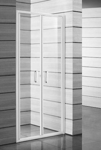 Sprchové dveře bez vaničky a farbou profilov v bielej farbe, výplň je z číreho skla. S povrchovou úpravou JIKA perla Glass, voda na povrchu zlúči do malých kvapiek a rýchlo skĺzne dolu. Zalamovacie systém otvárania. Ľavá i pravá orientácia.