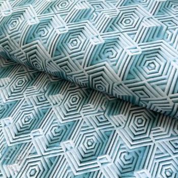 Výrobca: Bubulákovo s.r.o www.bubulakovo.sk, Certifikácia: OEKO-TEX Standard 100 class I., Farba: modrá, Gramáž: 240 g/m2, Motív: Geo vzory, Šírka: 150 cm, Zloženie: 95% VI + 5 % LY, Ošetrovanie: 27