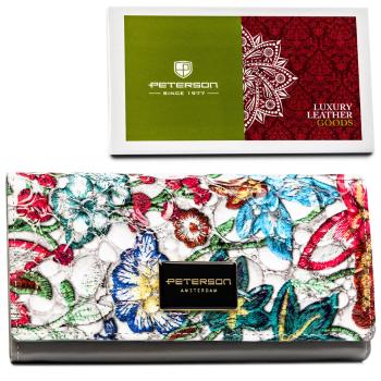 Veľká, ležatá dámska peňaženka z pravej kože s kvetinovým vzorom - Peterson